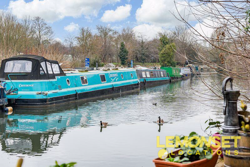 Set on a picturesque riverside in Hertfordshire, this residential filming location is a three-bedroom property offering uninterrupted views along a tranquil stretch of water dotted with classic canal boats. The three-storey house rises elegantly from the bank, with its garden positioned immediately on the water’s edge, creating a strong connection to the river setting. Natural light flows throughout the home, enhancing its calm, lived-in feel. A standout feature is the top-floor balcony, which provides expansive, elevated views across the river and surrounding greenery, making the property ideal for lifestyle, drama, or commercial shoots.